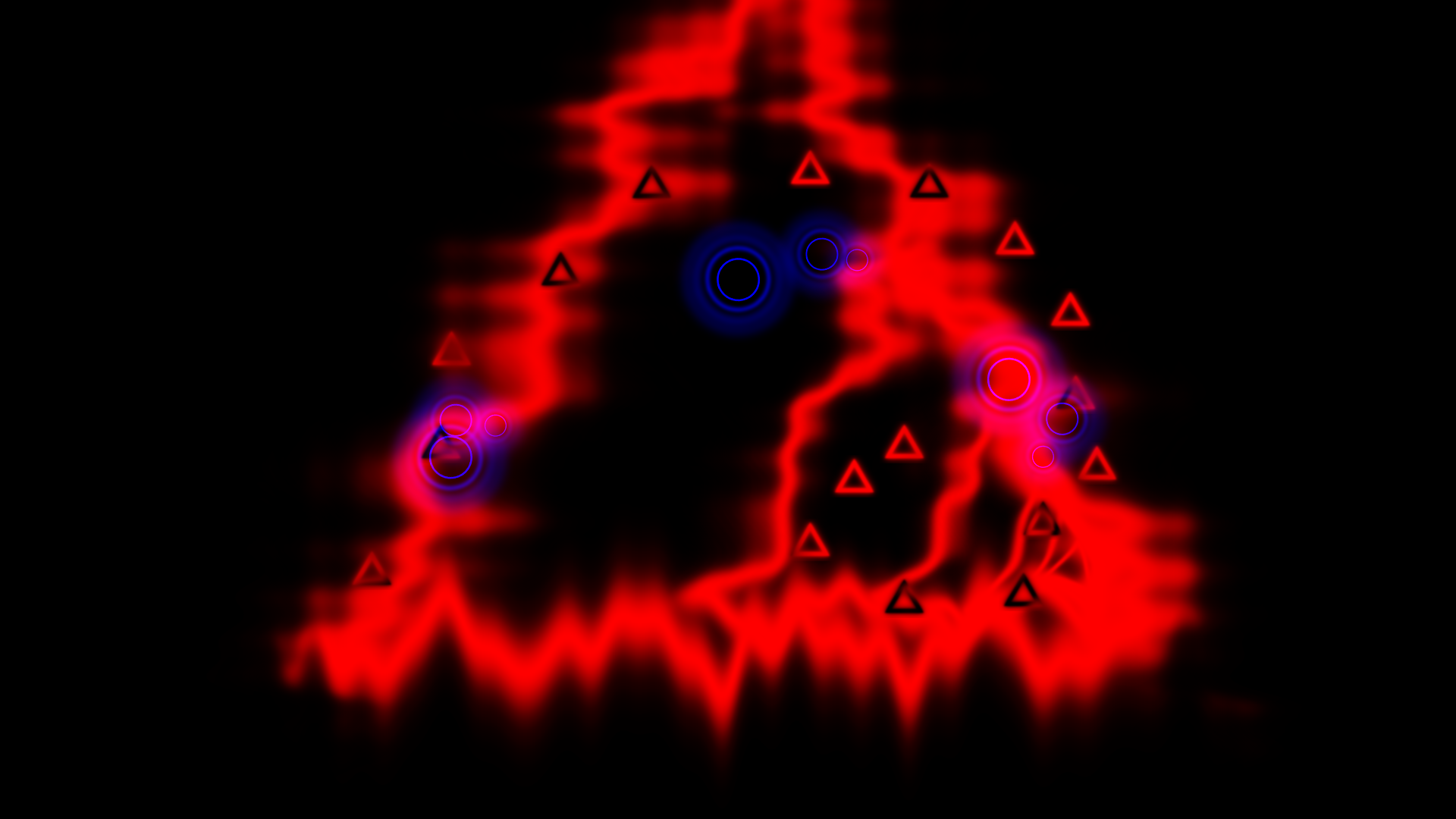 Each instrument has it's own shape and screen to communicate its unique timbre. As their part grew and grew, so would their influence on the screens around them; Eventually spilling into their neighbors as they reached climaxes in their parts.